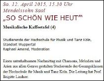 am 07. April 2019 um 15:30 Musikalische Kaffeetafel in der Hist. Stadthalle Wuppertal weitere Infos hier